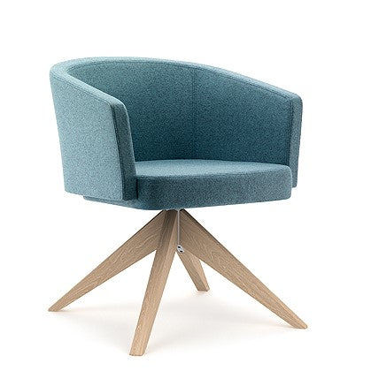 Zone lounge & lobby chair is Fully Upholstered with a Wooden 4 Star Raised Base Swivel that fits perfectly into any workspace with style and character